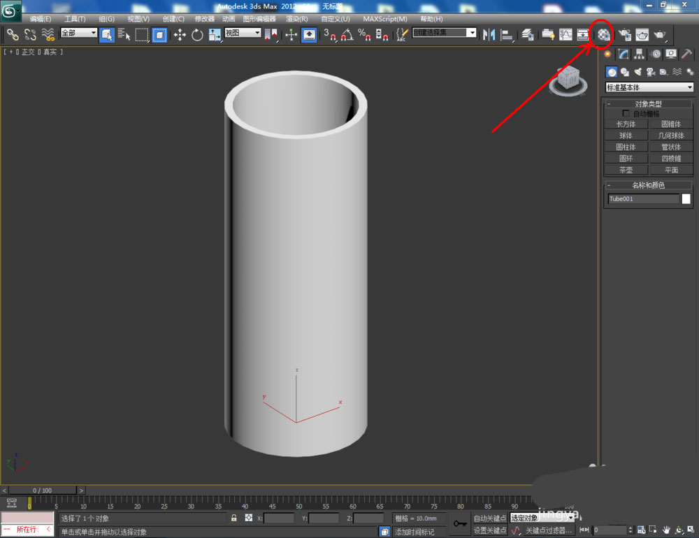 1、打开3Dmax2012软件,点击【创建】-【几何体】-【标准基本体】-【管状体】,在作图区域绘制一个管状体模型并根据需要设置好模型的各个参数;