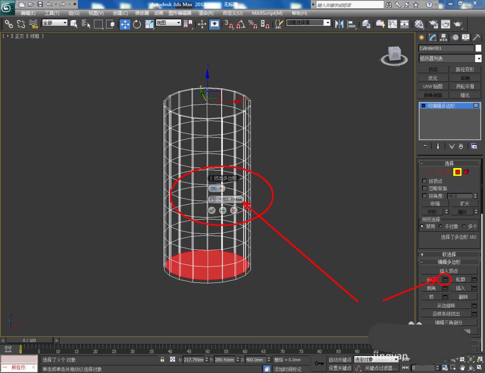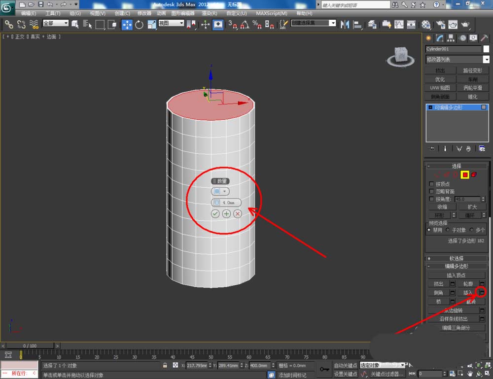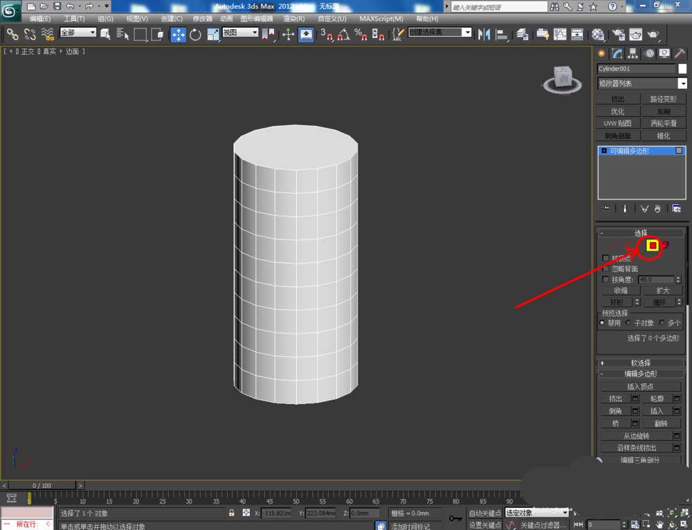 1、打开3Dmax2012软件,点击【创建】-【几何体】-【圆柱体】,在作图区域绘制一个圆柱体模型并按图示设置好圆柱体的各个参数。选中模型,点击【对象颜色】将模型的对象颜色设置为:白色后,点击鼠标右键-【转换为】-【转换为多边形】;