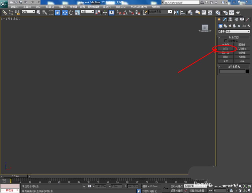 1、打开3Dmax2012软件,点击【创建】-【几何体】-【球体】,在作图区域绘制一个球体模型。选中模型,点击【对象颜色】将模型的对象颜色设置为:白色;