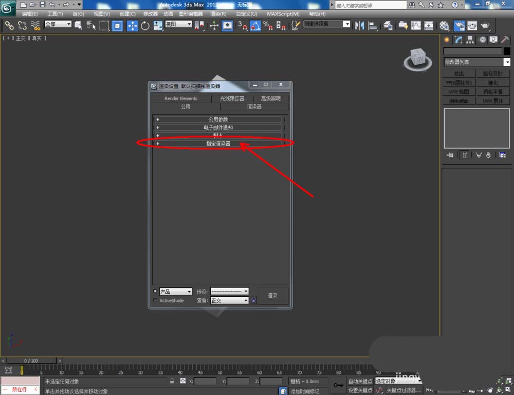2、点击【渲染】-【渲染设置】,弹出渲染设置框。点击【指定渲染器】-产品级【…】-【Vary-Adv2.10.01】调出vary渲染器(如图所示);
