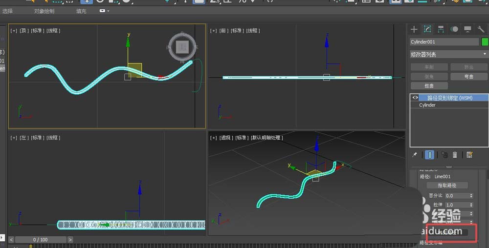 注意:不能删除路径,否则物体会变回原状。可以才用隐藏的方式,或将物体转换为可编辑多边形