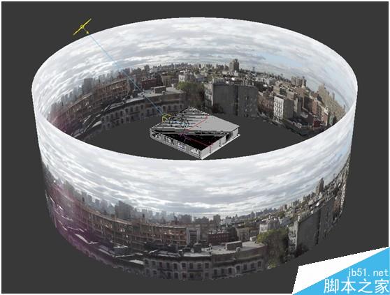 另一个问我的问题是怎么样制作外面的景观。我不喜欢在图片中增加back-plates,这样你永远不会得到能正确反映在现场的环境。通常,我倾向于使用hyper-large HDR纹理(像素宽度至少是15000),不仅只是为了照明或反射,而且也为了代替back-plates。然而,鉴于有大量的几何和复杂,多层的材料在这个场景里,使用这种巨大的纹理只是让我的渲染时间更长。因为使用低解析度影像地图的照明和低剂量辐射纽约全景,我难住我自己了,映射到一个圆柱体平板之外,有一个距窗口相当长的距离(图.08),但不产生或接收的阴影,使它不会干扰HDR照明。因为实圆柱映射,外部环境无论将摄像机转到什么角度来看,它看起来都是合适的,这就意味着在最后不会出现复杂的问题。