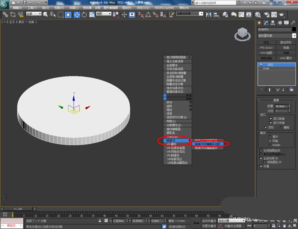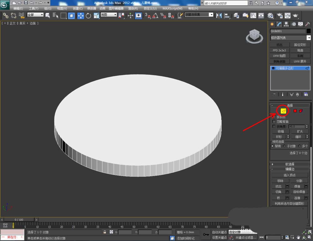 3、选中模型,点击鼠标右键-【转换为】-【转化为可编辑多边形】。点击【边】图标,选中图示模型上的边后,点击【切角】,按图示设置好切角的各个参数(如图所示);