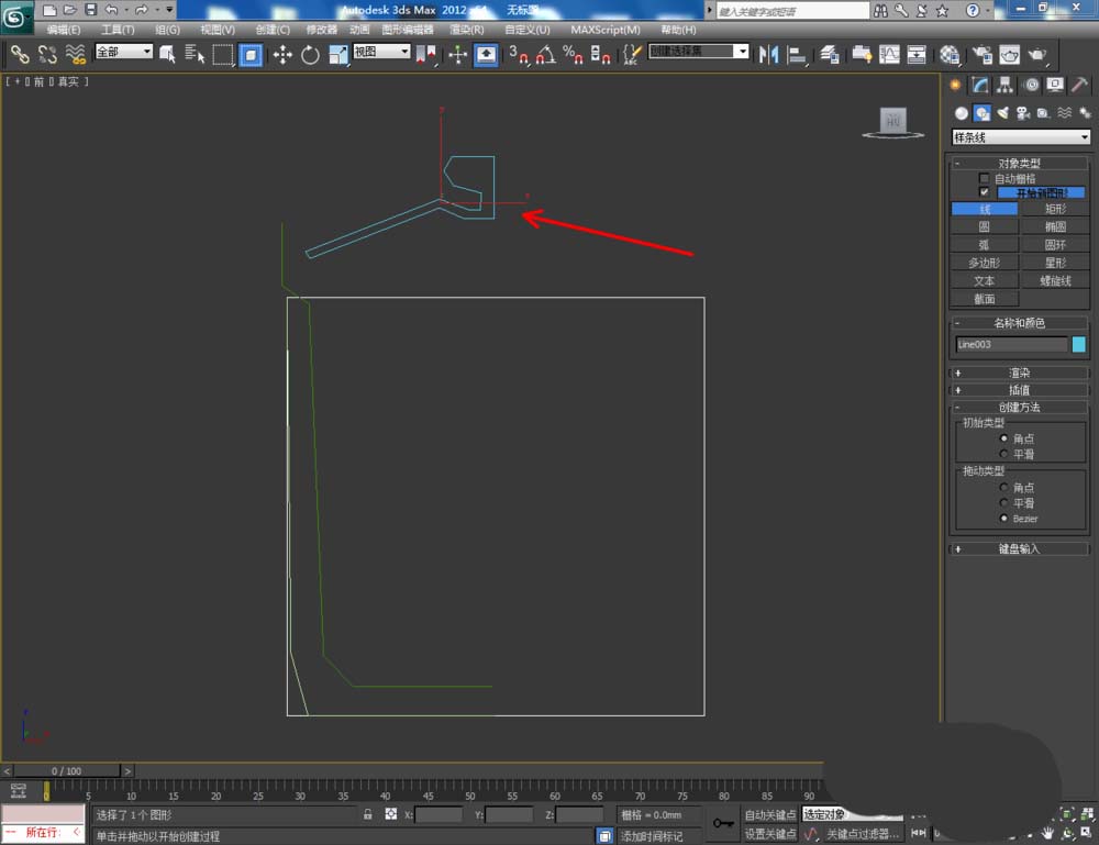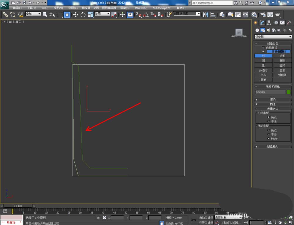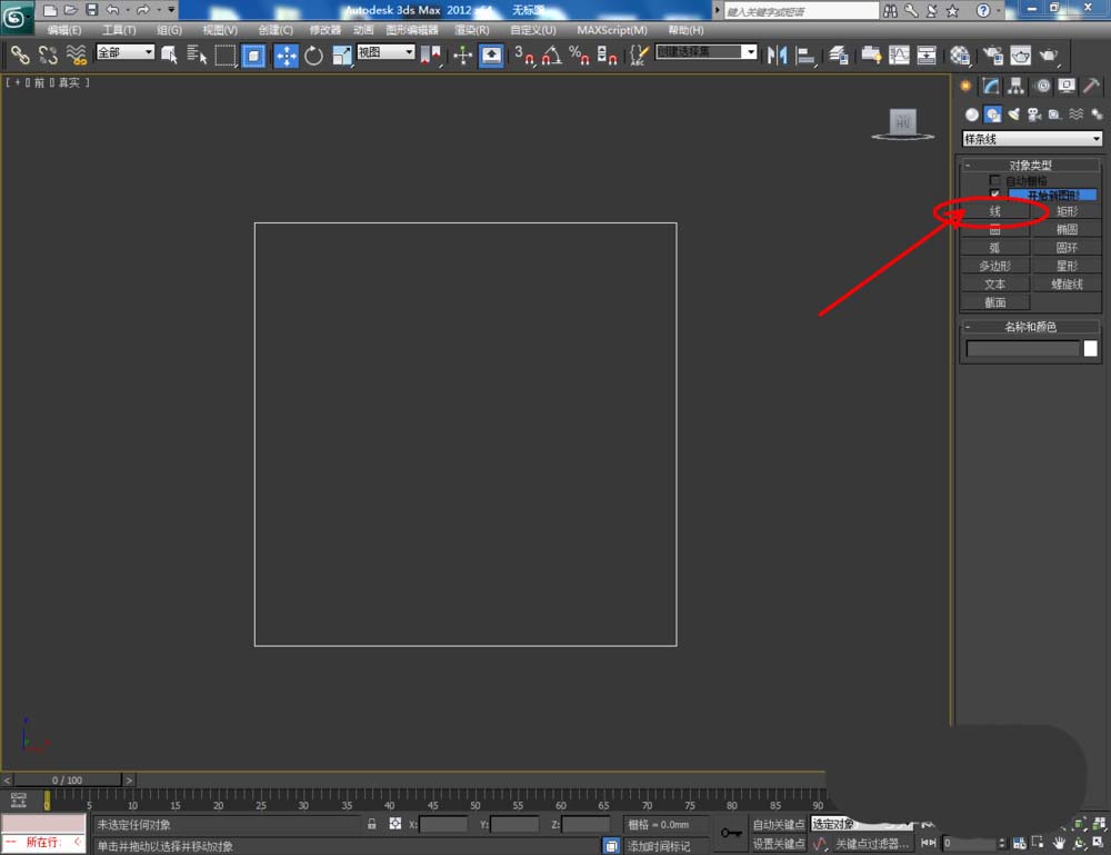 1、打开3Dmax2012软件,点击【创建】-【图形】-【矩形】,在作图区域绘制一个200*200mm的矩形图案作为参考线框。选中图案,点击【对象颜色】将图案的对象颜色设置为:白色;