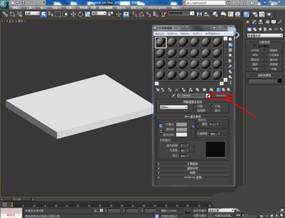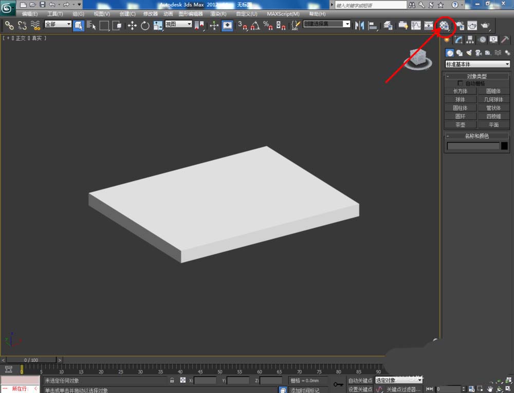 1、打开3Dmax2012软件,点击【创建】-【几何体】-【长方体】,在作图区域绘制一个长方体模型。点击【对象颜色】将模型的对象颜色设置为:白色;