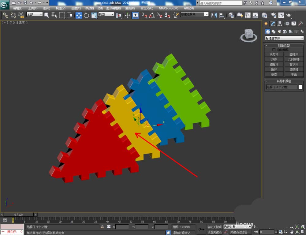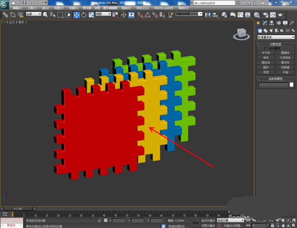 1、打开3Dmax2012软件,将我们前面已经做好的方形积木和三角形积木模型文件拉进作图区域,将积木模型合并进来(如图所示);