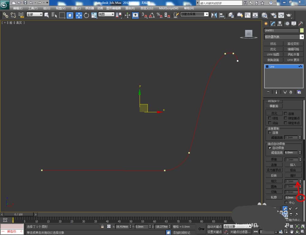 3、点击右边工作区中的【样条线】,选中图案上的所有样条线,鼠标向上拉动【轮廓】右边的小三角,对选线进行轮廓处理,制作出盆子的截面图案(如图所示);