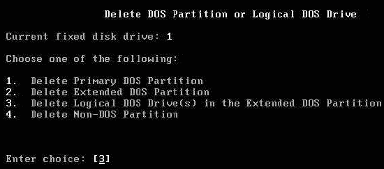 删除分区,在Fdisk主菜单中选“3”后按回车键。