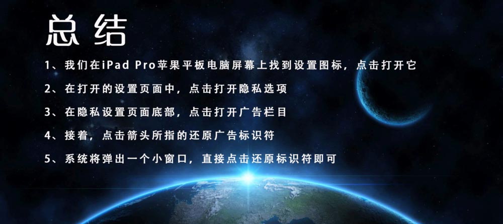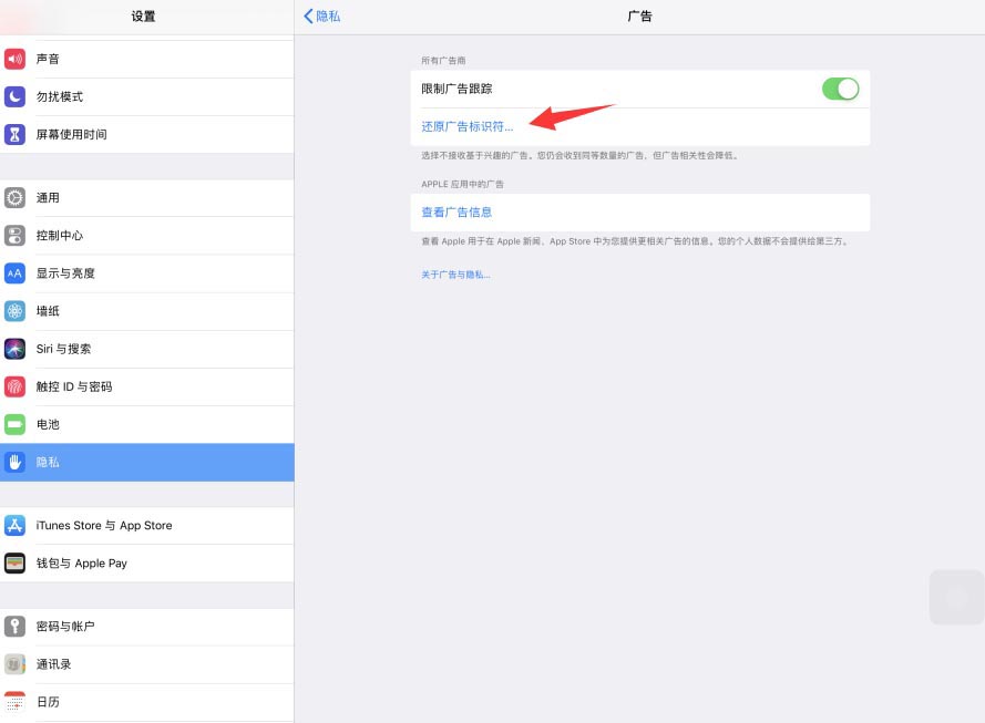 iPad Pro苹果平板电脑还原广告标识符在哪里?想要还原广告标识符,下面我们就来看看详细的操作步骤。