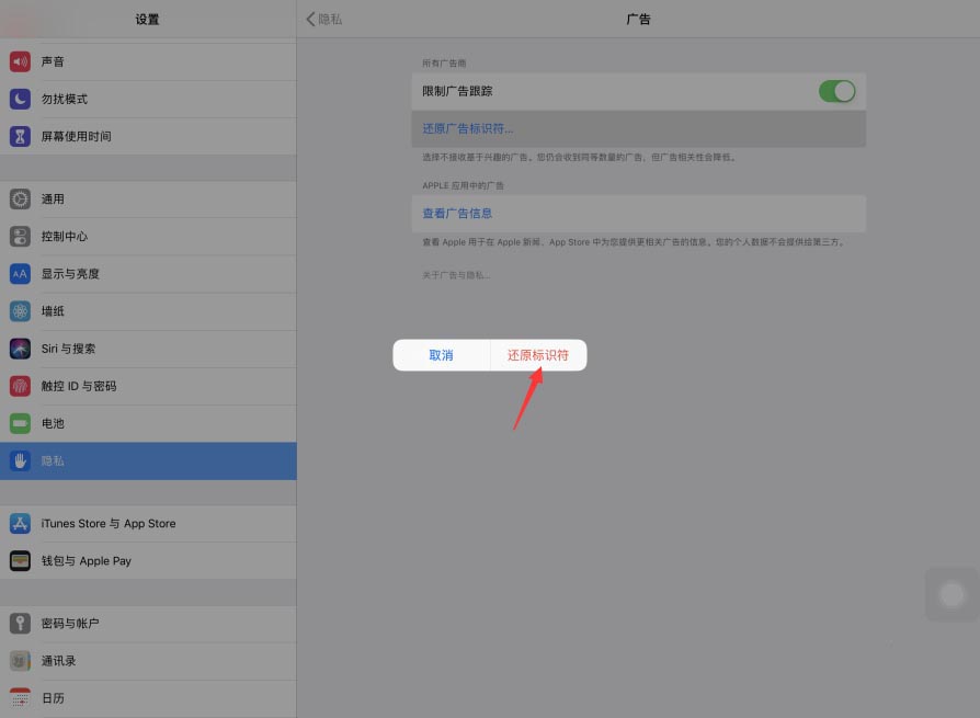 以上就是iPad Pro还原广告标识符的技巧,希望大家喜欢,请继续关注武林网。