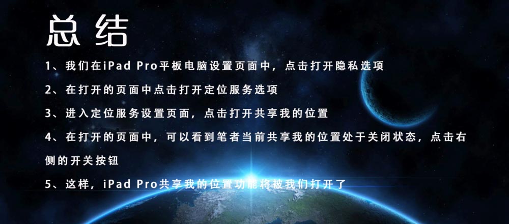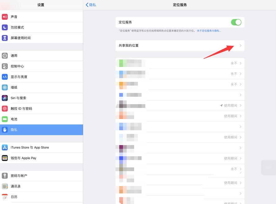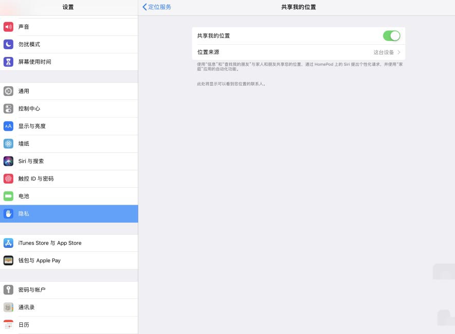 5、这样,iPad Pro共享我的位置功能将被我们打开了