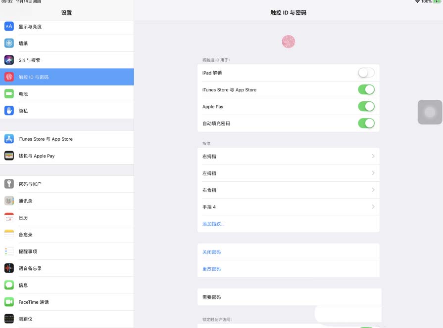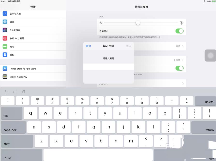 5、这样,以后iPad Pro想要解锁屏幕,必须手动输入密码才可以,指纹解锁已经失效