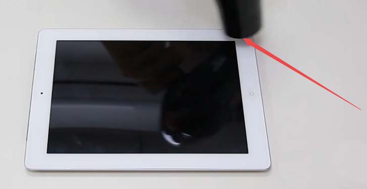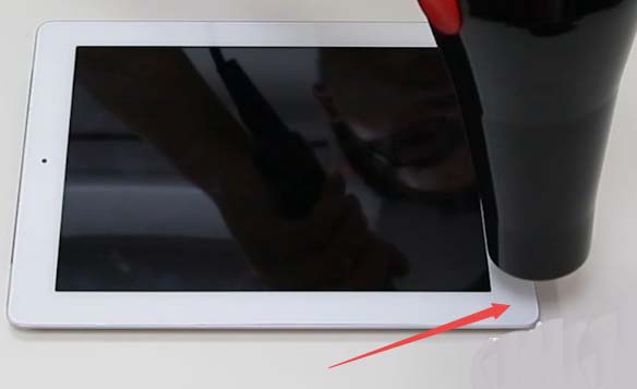2、我们用吹风机给ipad的周围加热个2分钟,可用一点点的酒精擦在周围,都是为了让屏幕胶松软,这样可以轻松取下屏幕