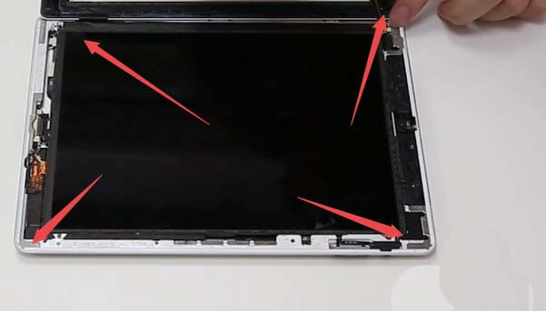 6、然后用四角螺丝刀拧下内屏四周的螺丝,然后慢慢代开ipad内屏