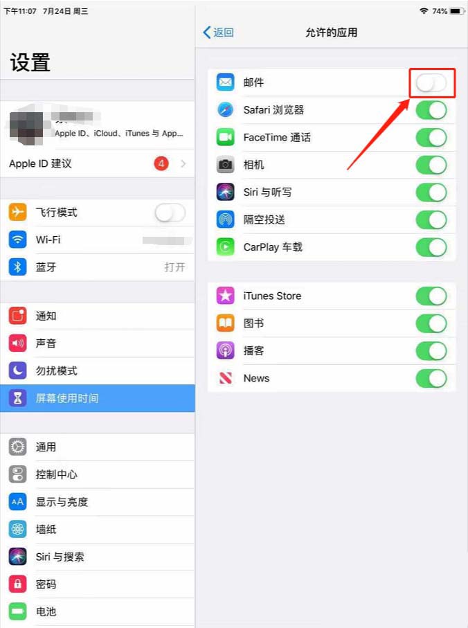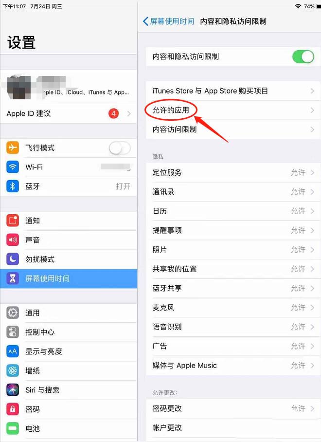 3、如果要隐藏iPad自带的应用,点击“允许的应用”,