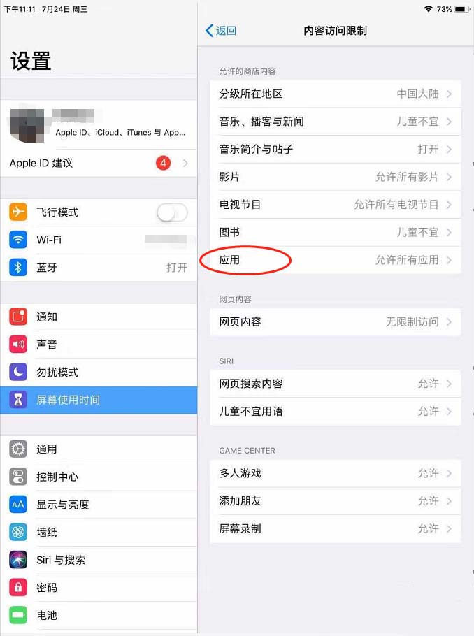 5、如果要隐藏通过App Store下载的应用,点击“内容访问限制”;