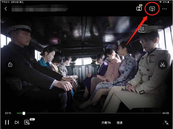 2、点击屏幕右上角的投屏图标,有些视频App的投屏图标隐藏起来了,需要点击右上角的三个小圆点展开。