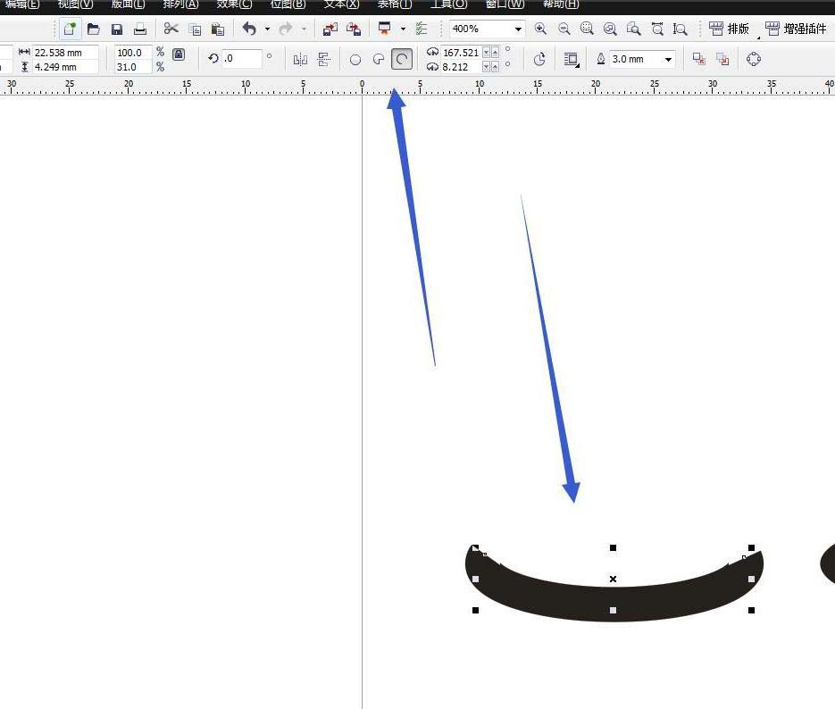 将弧形转化为对象,然后选择两个图形进行焊接,可以合并为一个图形,完成