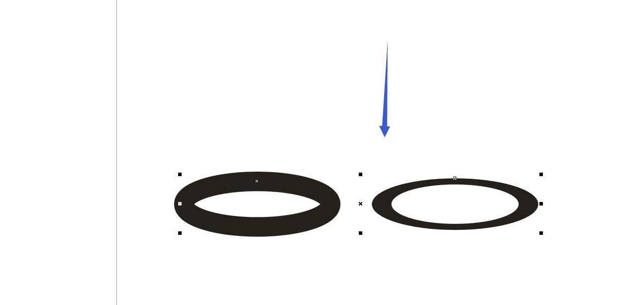 将这两个椭圆形都向下压扁,可以得到不同的效果,第一个图形轮廓是一样粗的,另一个是变形的