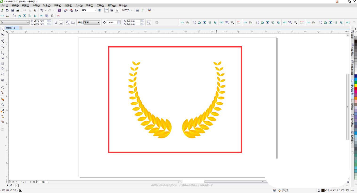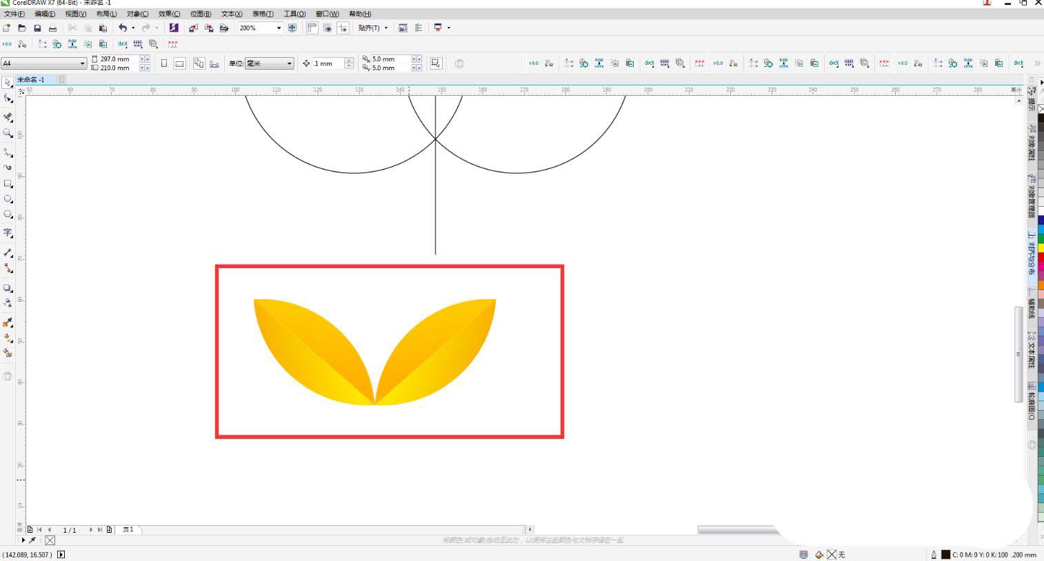 6、按Ctrl+k打散组合,删除椭圆,选中所有的叶子水平翻转复制。这样徽标图形就做好了。