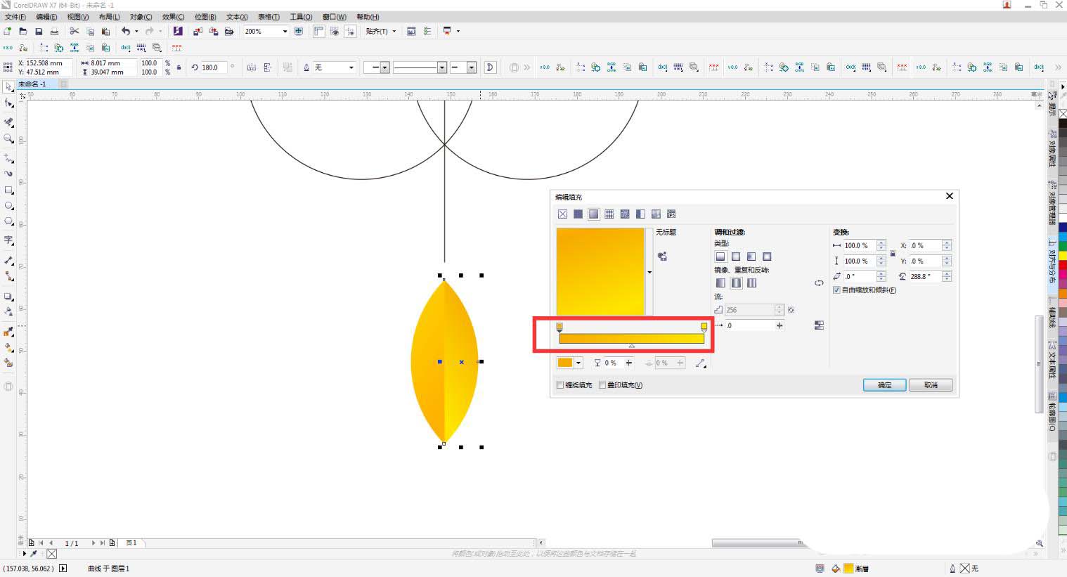 3、把小叶子移出来,去掉描边,按F11填充渐变色,按Ctrl+g组合起来再旋转,按住Ctrl键拖动水平翻转复制一个,再按Ctrl+g把两片叶子组合起来。