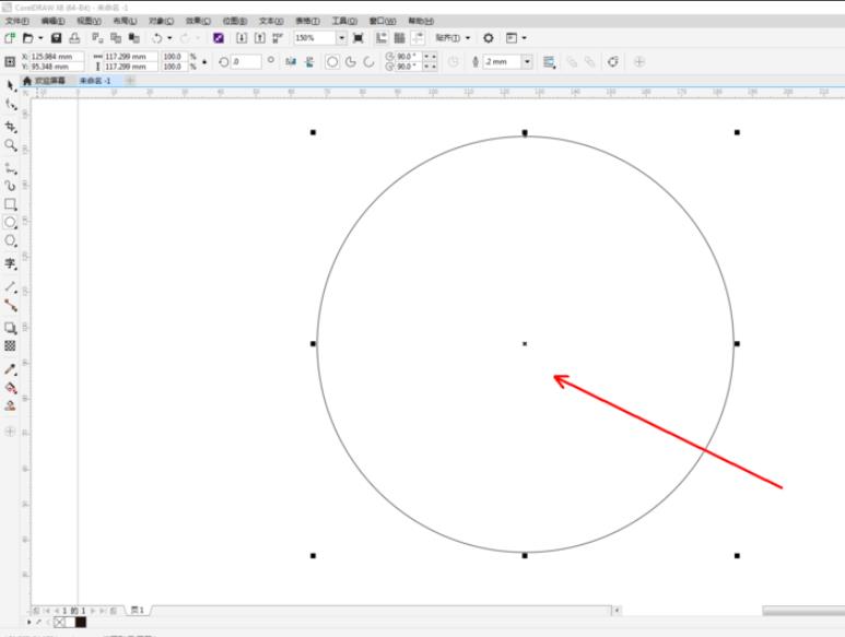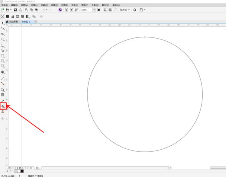 2、点击【椭圆形工具】,在作图区域绘制一个圆形图案;