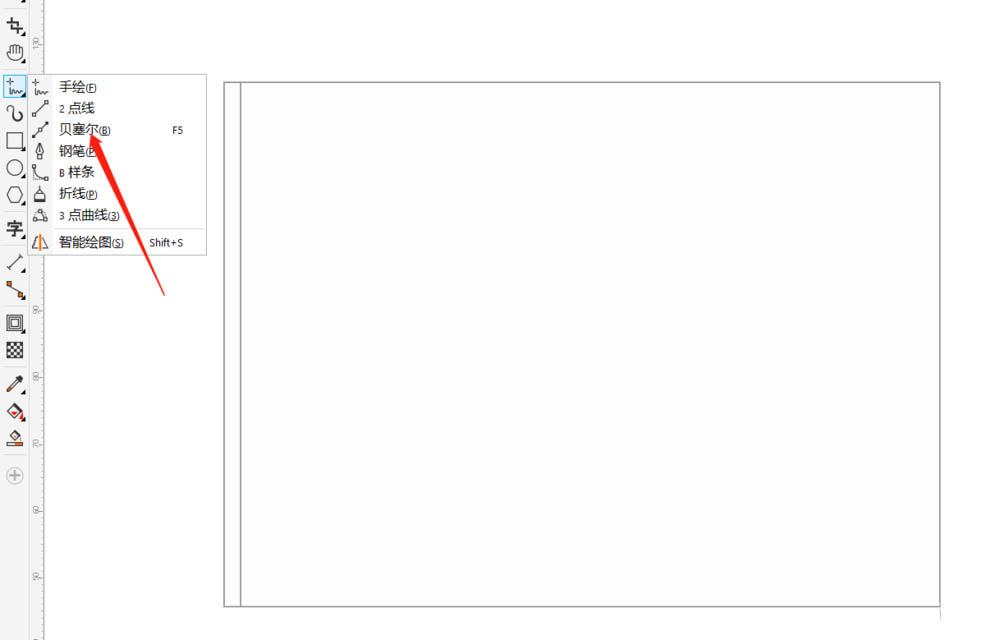 2、选择左侧工具栏里原“贝塞尔”工具,垂直画一条线,做出折边效果