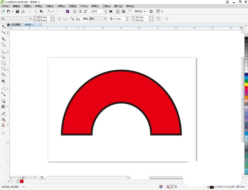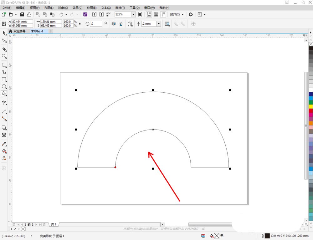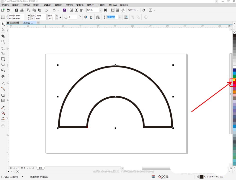 4、选中拱形,鼠标左键点击右边色板中的色块,根据需要设置好拱形颜色即可。