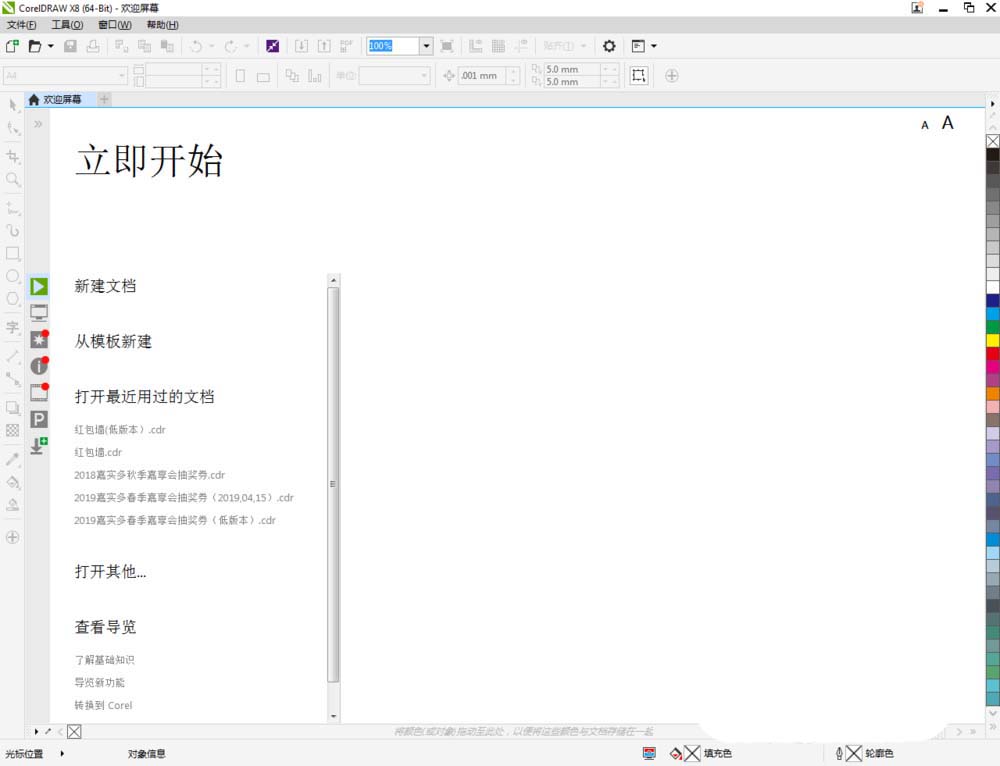 1、打开CorelDRAW X8 软件,点击【新建文档】,按图示参数新建一个cdr文档(如图所示);