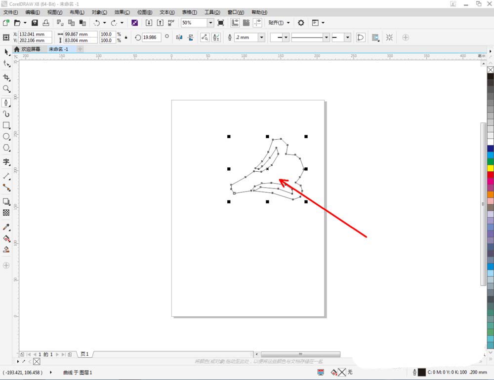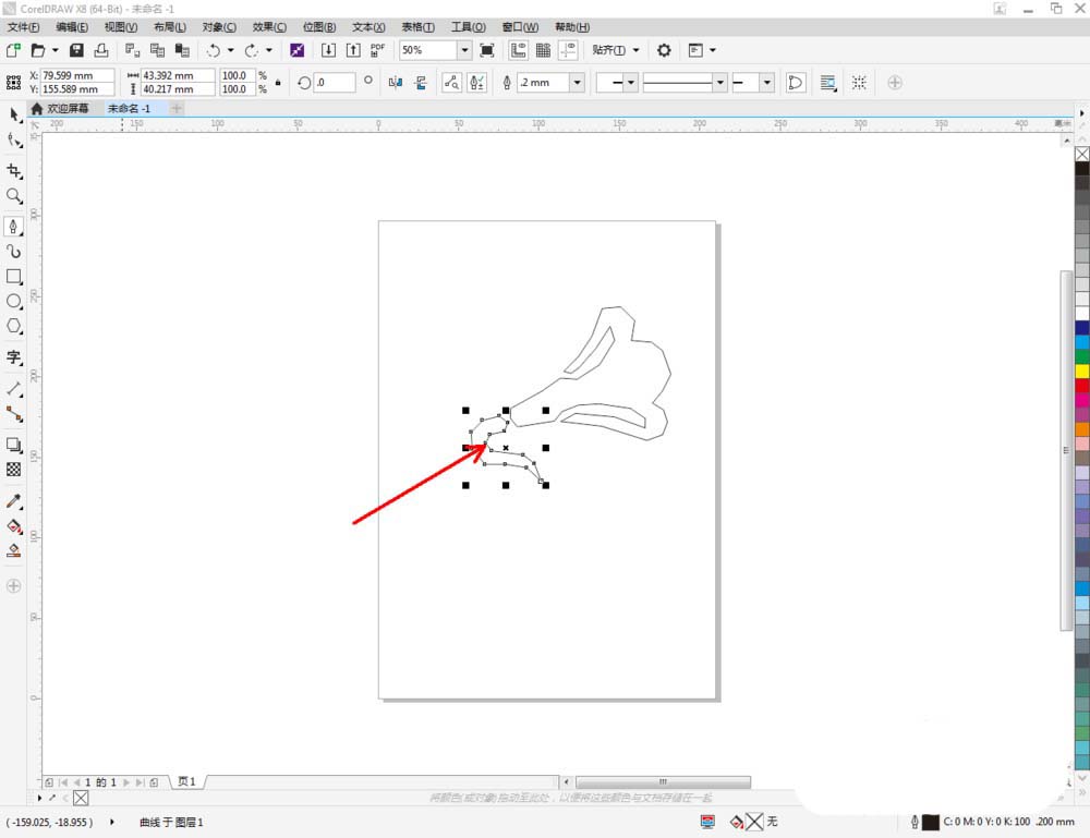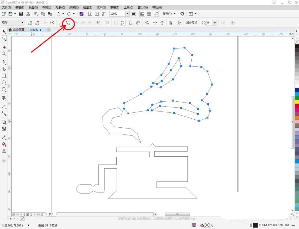 3、选中多边图案,点击【形状工具】,选中喇叭口图案上的所有点,点击【转换为曲线】将图案转曲后,按图示调整控制点,完成喇叭口图案的绘制(如图所示);