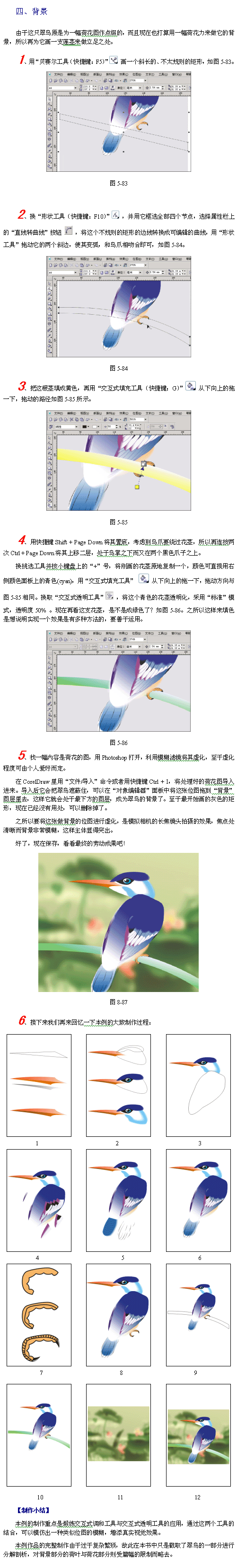 关于翠鸟的介绍还有好多,本章就只介绍这一点,如果还想知道更多的话就去百度吧,好,话不多说,我们来一起看看翠鸟如何绘画吧