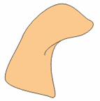 5.马的颈部很长,而且很灵活。我们将一个椭圆转化成如下形状。它不仅包括了颈部,还包括了头部和颈部相接的一部分。所以顶部你没必要画的那么规范,但要能保证头部和颈部之间不会留下空白。注意到颈部中间的那道线条了吗?这是用来表示颈部肌肉的,用0.5pt的贝兹曲线就可以了。