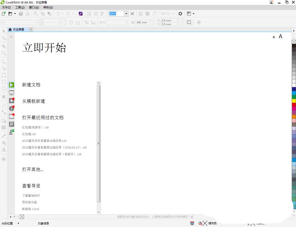 1、打开CorelDRAW X8 软件,点击【新建文档】,按图示参数新建一个cdr文档(如图所示);