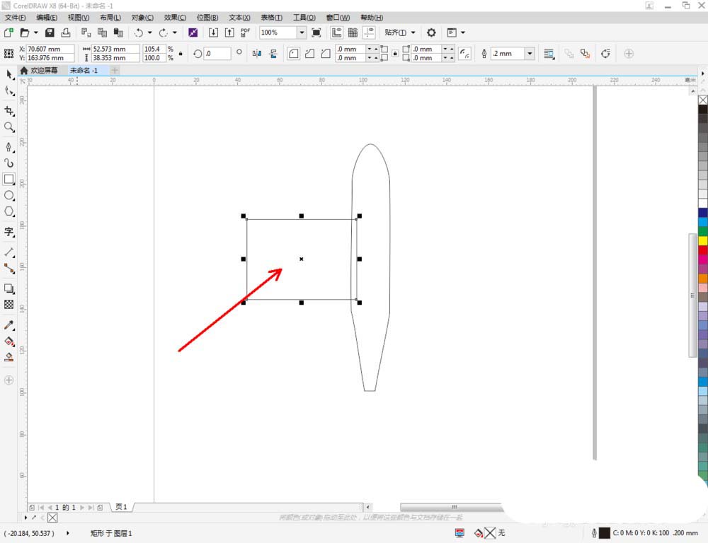 3、点击【矩形工具】,按图示参数在机身旁边绘制出四个矩形图案并依次调整好矩形图案的位置关系(如图所示);