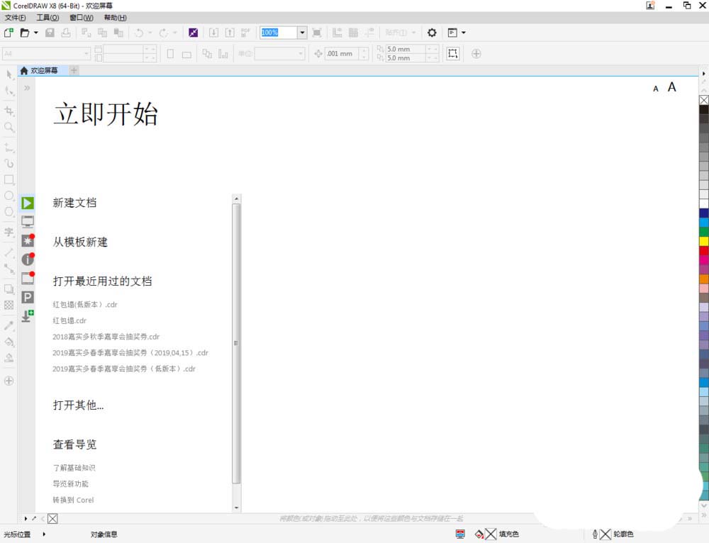 1、打开CorelDRAW X8 软件,点击【新建文档】,按图示参数新建一个cdr文档(如图所示);