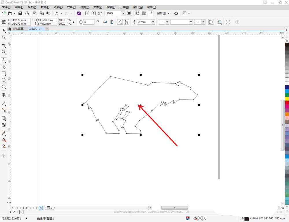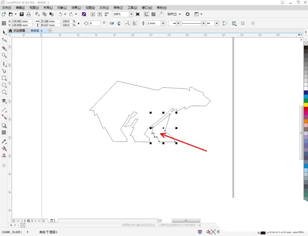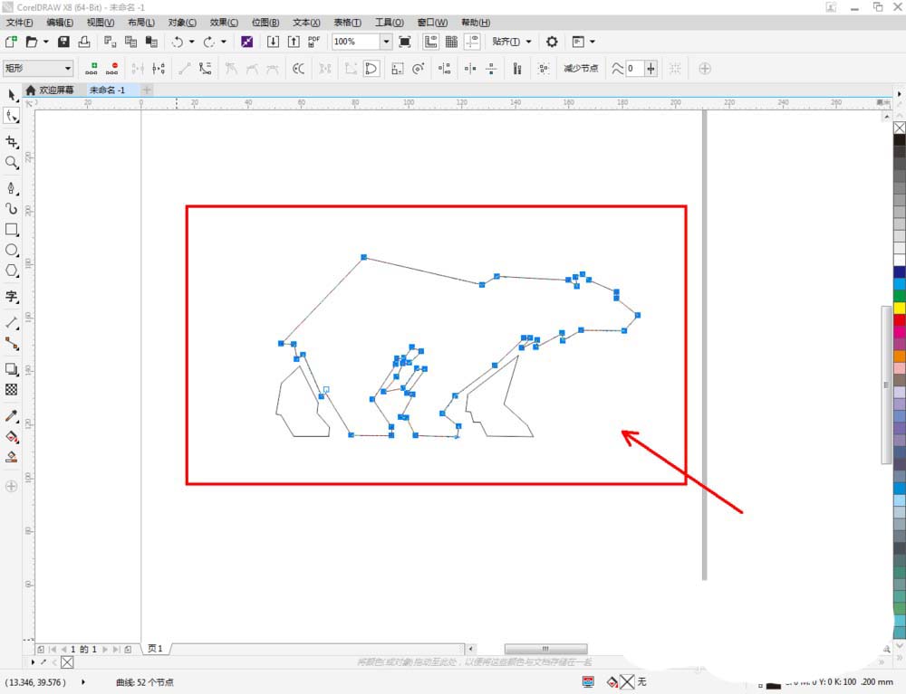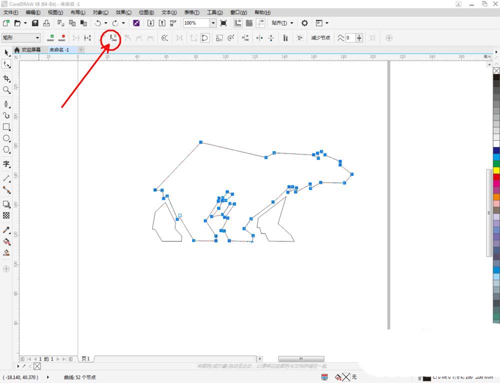 3、点击【形状工具】点击多边图案1并框选图案上的所有节点,点击【转化为曲线】将节点转曲。完成后,选中图示图案上的节点,点击【平滑节点】将节点进行平滑处理并调整好控制点(如图所示);