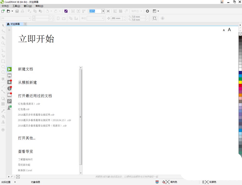 1、打开CorelDRAW X8 软件,点击【新建文档】,按图示参数新建一个cdr文档(如图所示);