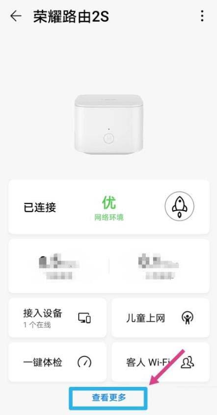 1、在“智慧生活”APP中打开荣耀路由器2S,选择“查看更多”