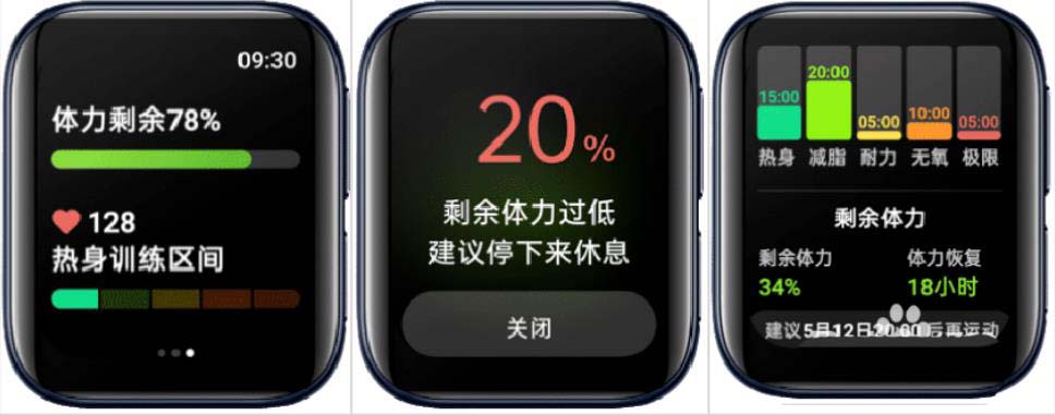 2、运动中OPPO Watch实时监测你的体力,过低时会主动提醒你!