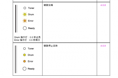 1、打开电源,会发现drum和error灯常亮