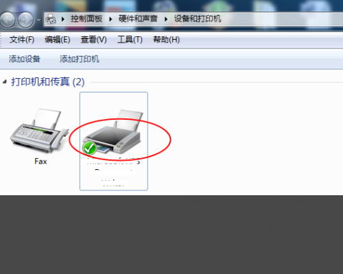 2、找到打印机图标,下图红色圆圈处。双击打印机图标,可以看到弹出的小窗口。在上面可以做各种各样的设置。