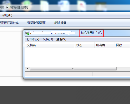 3、现在,标题上显示的打印机工作状态是脱机使用打印机,要把它修改过来,改成连机使用。