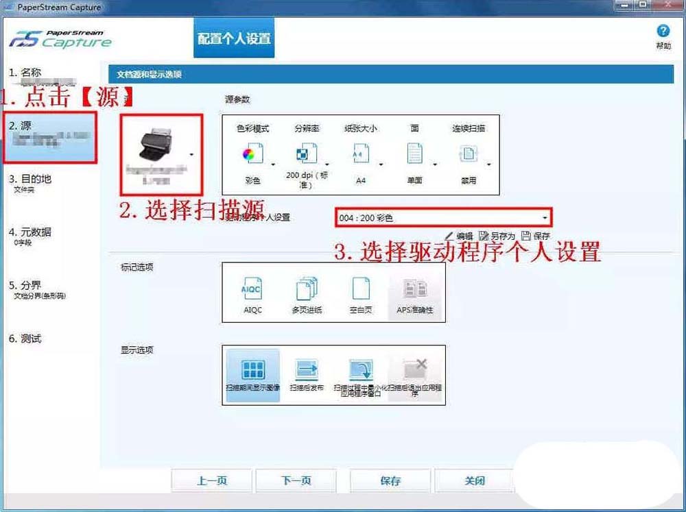 5、点击【源】,选择扫描源,接着选择【驱动程序个人设置】