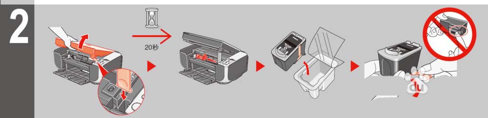 提示:如果你不准备更换新墨盒,请不要取出旧墨盒。否则,留在打印头喷嘴中的墨会变干,致使打印受阻。
