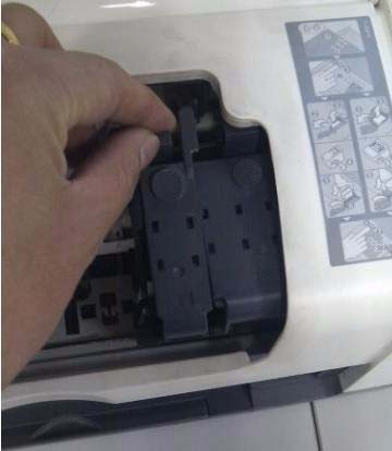 2、向上拉起要更换的墨盒的护夹。这时,墨盒会从墨盒舱中升高出一定位置,然后取出墨盒并妥善处理。