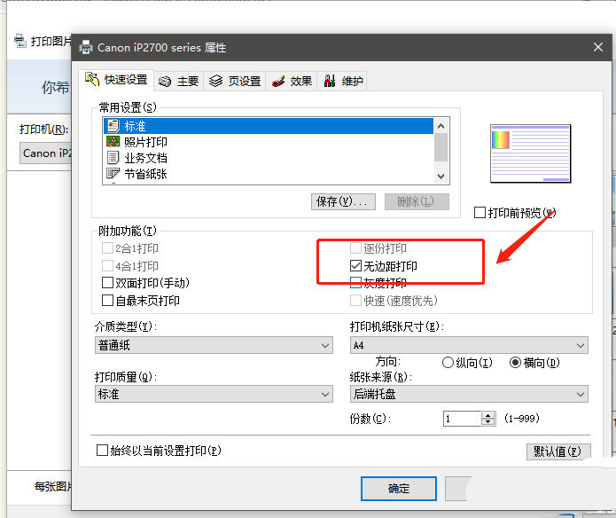 佳能G2800一体机怎么设置无边距打印5寸照片?
