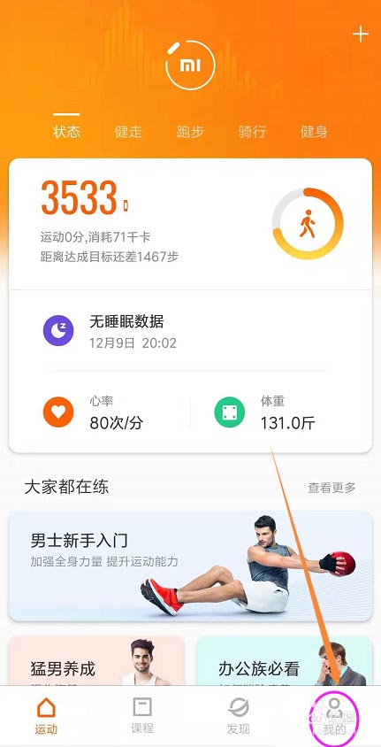 ①打开手机【小米运动】,点击【我的】。