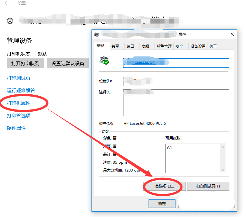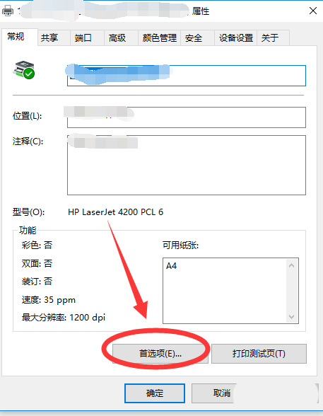 5、在驱动打印机属性的常规页面点【首选项】,接下来的设置就跟步骤2一样了