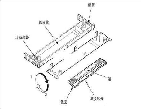 5、轻轻地除掉色带箱,勿使色带从色带盒中弹出。