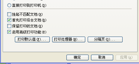 4、此刻要注意,假如选择“直接打印到打印机上”,这说明打印机禁用了“假脱机打印”的方式,而使用直接打印到打印机的方式。